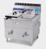 Gas fryerAuto-single Gas Deep FryerStainless steel body .Stainless steel oil vatSaftey self-lock valve Full automatic fire ,automastism thermostat ,flamout protected device .Gas consumption :0.96kg/hCapacity :17L*2Size :62*67*76.5cm